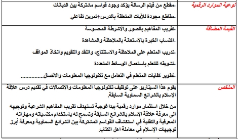 سيناريو بيداغوجي لإدماج الموارد الرقمية في درس علاقة الإسلام بالشرائع السماوية السابقة