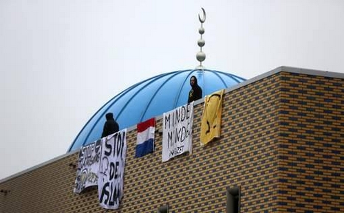 تمكن مناهضون للاسلام، نهاية هذا الأسبوع ، وفي إطار حملاتهم المعادية للاسلام من اقتحام سطح مسجد بمدينة “دوردريخت” الهولندية ، رافعين لافتات مناهضة للاسلام من قبيل “لا للاسلام” و “أوقفوا الاسلام”.
