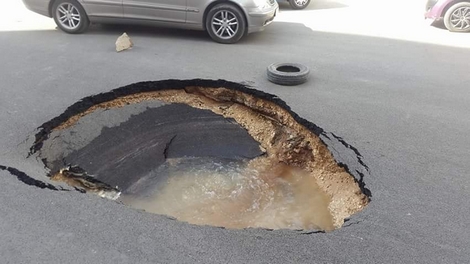 بعد اقل من اسبوعين من انتهاء اشغال اعادة تزفيت احد الشوارع الرئيسية بمدينة الحسيمة، تفاجئ المواطنون هذا اليوم بظهور حفرة عملاقة وسط الطريق، تحولت الى بركة مائية.