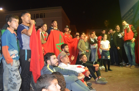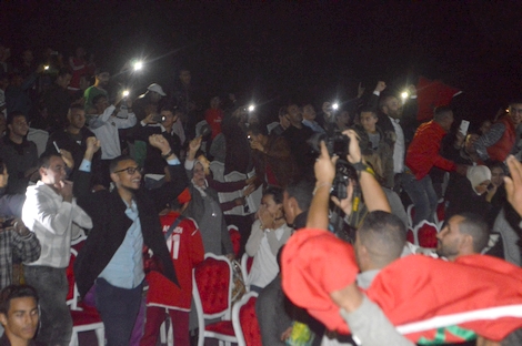 وتابعت المئات من الجماهير داخل قاعة المهرجان وخارجها مقابلة أسود الأطلس بحماسية كبيرة، أجّجتها الأهداف التي هز بها لاعبوا المنتخب المغربي شباك الايفواريين معلنين نهاية عقدة التأهل للمونديال.