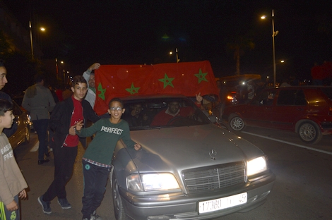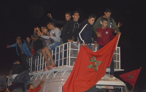 وأطلق السائقون العنان لمنبهات سياراتهم التي شكلت طوابير على طول كورنيش الناظور والشوارع المتفرعة عنه عازفين سمفونية الانتصار.