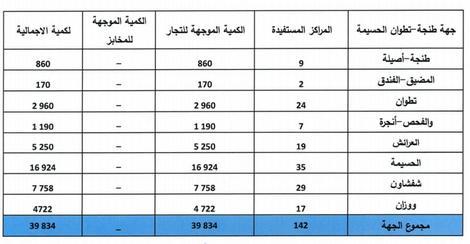 كشف محمد بنشعبون وزير الاقتصاد والمالية، وإصلاح الإدارة، ان الحصة المخولة لجهة طنجة تطوان الحسيمة من الدقيق المدعم تبلغ 39 ألف و 834 قنطار موزعة على مختلف الأقاليم.