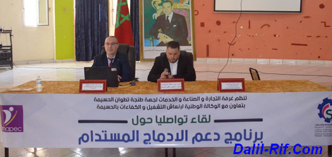 نظمت غرفة التجارة و الصناعة و الخدمات لجهة طنجة تطوان الحسيمة بتعاون و تنسيق مع الوكالة الوطنية لانعاش التشغيل و الكفاءات بالحسيمة لقاء تواصليا حول برنامج اوراش II لدعم الادماج المستدام .