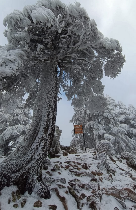وأظهرت صور نشرها نشطاء على مواقع التواصل الاجتماعي جبل الدهدوه بجماعة كتاما مكسوًا بالثلوج.