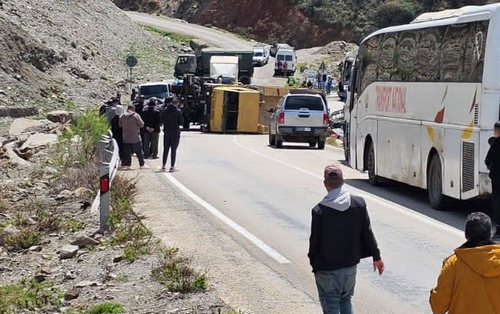انقلبت، زوال اليوم الجمعة 4 أبريل 2025، شاحنة تابعة للقوات المسلحة الملكية على مستوى الطريق الوطنية رقم 16، الرابطة بين إقليمي الحسيمة وتطوان، وذلك قرب منعرج قنطرة "واد المالح" بين منطقتي "تغسة" و"امتار".