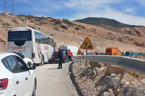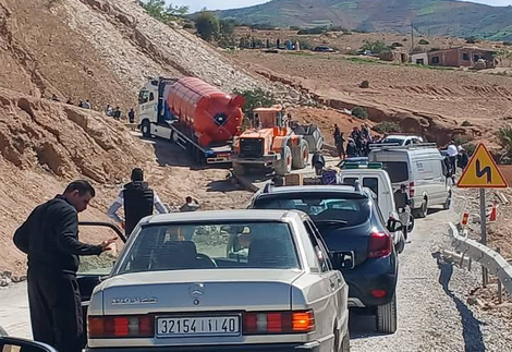 ووفق مصادر محلية، فقد علقت الشاحنة وسط المسلك الضيق والمنحدر، ما أدى إلى عرقلة تامة لحركة المرور لساعات.