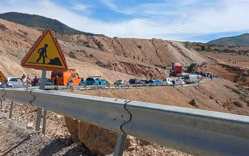 ولا يزال المقطع المنهار من الطريق الوطنية رقم 16 على حاله دون أي تقدم ملموس في أشغال إعادة فتحه، مما يفاقم معاناة مستعملي هذا المحور الحيوي ويزيد من الضغط على المسلك المؤقت.