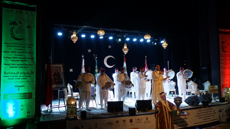 وتخللت سهرة الافتتاح وصلات إنشادية متميزة في فن المديح والسماع, صدحت خلالها حناجر المداحين والمسمعين بتراتيل وابتهالات في مدح الرسول الكريم صلى الله عليه وسلم والتقرب إلى الله ، حيث أبدعت طائفة الأزهر العيساوية الفاسية في تقديم لوحات إنشادية جسدت عمق هذا التراث الروحي، إلى جانب الحضرة الشفشاونية خيرة افزاز التي بصمت على أداء فني راقٍ نال إعجاب الحاضرين.