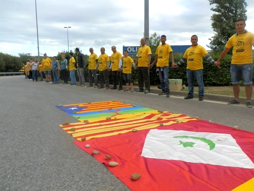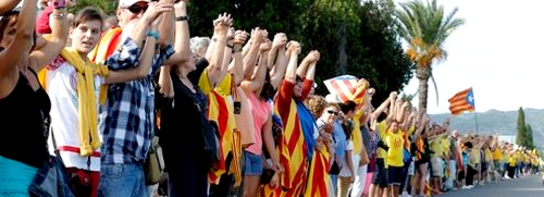 ورفع الكاطالونيين خلال هذا الحدث شعارات وأعلام الحركة الانفصالية و أياديهم متشابكة عبر المدن و على طول الطرق الريفية حسب مصادر صحفية دولية.