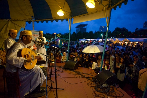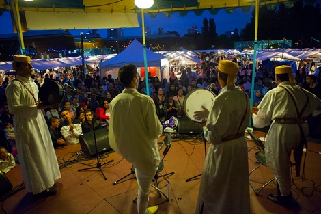 وتحولت الحديقة الى مكان يشبه ساحة جامع لفنا بمراكش حيث يتم تقديم مختلف انواع الماكولات المغربية التقليدية كما ضمت الساحة اكشاك لعرض المنتجات المغربية اضافة الى تقديم عروض فلكلورية .
