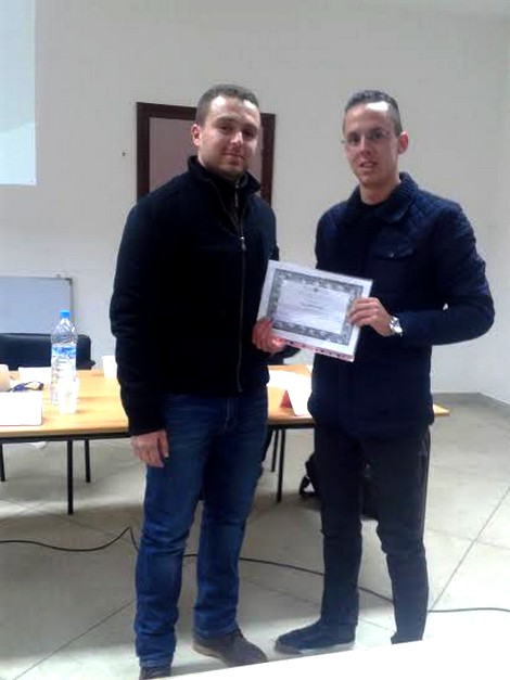 بعد ذلك، تم تقديم شهادة تقديرية لضيف المؤسسة الدكتور عبد المطالب أشوخي من قبل الأستاذ أحيذار محمد زميله في الدراسة.