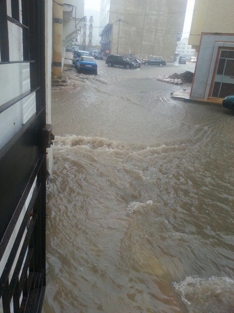 مياه الامطار التي حولت شوارع مدينة الحسيمة الى اودية صغيرها تغمرها الفيضانات، داهمت بعض البيوت والمحلات التجارية الشيئ الذي خلف تذمرا واستياء لدى ساكنة المدينة.