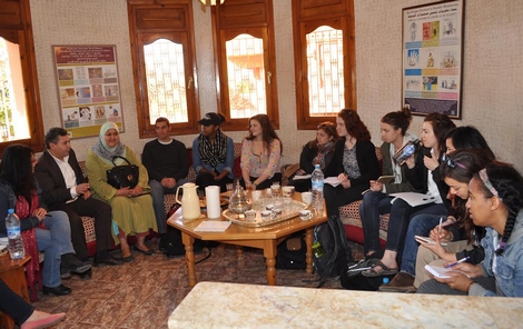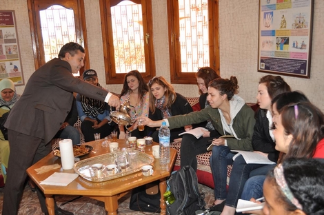 تم يوم الاحد 08 مارس 2015 بمقر مؤسسة هولندا لمساعدة العائدين ببركان استقبال وفد يضم 12 طالبا أمريكيا من مختلف الولايات الامريكية ومؤطريهم كل من سعاد الدوادة مديرة البرنامج ووفاء دريسي المنسقة بمركز تواصل الثقافات بالرباط www.cccl.ma وذلك بغية التعريف بالشمال الشرقي للمغرب من حيث الثقافات والعادات والتقاليد الخاصة بالساكنة وبالمجتمع المدني.