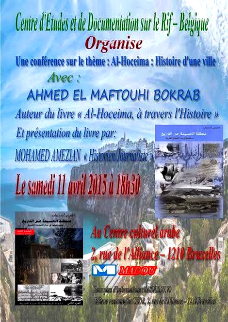 "الحسيمة: تاريخ مدينة" بحضور الأستاذ أحمد المفتوحي بوقراب مؤلف كتاب "الحسيمة عبر التاريخ" مع تقديم الأستاذ محمد أمزيان الصحفي والمؤرخ لقراءة في الكتاب. وتعد هذه فرصة للقاء الجالية الريفية بأحد أبنائها.