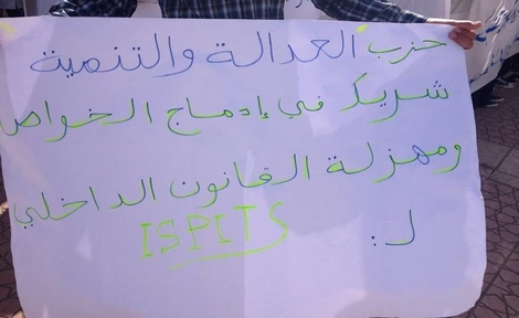 و قد رفع المحتجون في وقفة سلمية عددا من الشعارات المطالبة بتعديل القانون الداخلي لمعاهد التمريض و كذا بعدم إدماج الخواص في الوظيفة العمومية و ذلك لغياب مبدأ المساواة و تكافؤ الفرص بالنظر إلى التكوين الذي حضي به أبناء القطاع العام و الذي يسبقه انتقاء حسب النقاط المحصل عليها في البكالوريا إضافة إلى اجتياز امتحان كتابي و آخر شفوي و انتهاء بامتحان تخرج وطني، كما رفعت التنسيقية المحلية شعارات منددة بسياسة حكومة العدالة و التنمية التي صادقت على عدد من المشاريع التي تروم إلى خوصصة قطاع الصحة و بيع صحة المواطن باقتراح من وزير الصحة الذي يمثل حزب التقدم و الاشتراكية و الذي حضي بدوره بحصته من الشعارات المستنكرة لسياسته التي لا تمت بأي صلة لمعنى "التشاركية" بالنظر إلى القرارات الأحادية و الارتجالية لوزير الصحة حسب ما أكده أحد الخريجين.