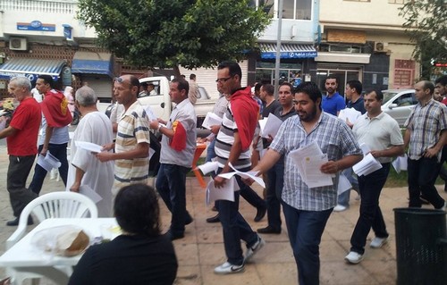 خرج يوم أمس الاحد 30 أكتوبر العشرات من أعضاء حزب النهج الديمقراطي لجنتي امزورن والحسيمة، في مسيرة توزيع نداء مقاطعة الانتخابات الجماعية والجهوية المقررة يوم الجمعة 4 شتنبر المقبل.