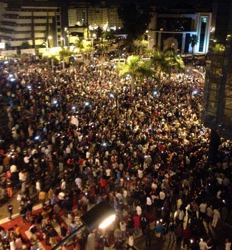 وكانت المظاهرات قد انطلقت مع الساعة الثامنة مساء بمسيرات شعبية حاشد خرجت من جميع أحياء مدينة طنجة، في اتجاه "ساحة الأمم" بقلب العاصمة الشمالية للمغرب، بالتزامن مع حملة إطفاء الأضواء بالبيوت والمحلات التجارية، وتعويضها بالشموع، في شكل إحتجاجي ضداً على الشركة المذكورة التي تكوي جيوب المواطنين كل شهر حسب شعارات المحتجين.