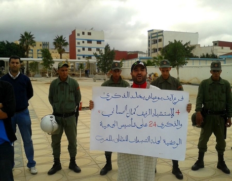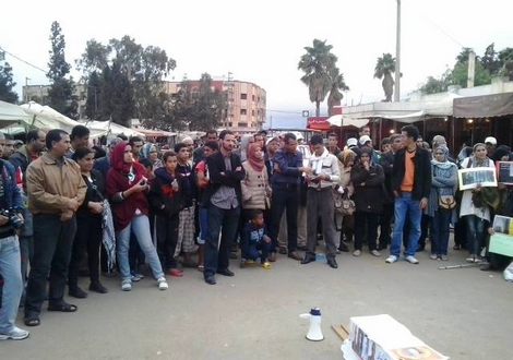 تخليدا للذكرى الرابعة لمقتل الناشط في الجمعية الوطنية لحملة الشهادات المعطلين بالمغرب وحركة 20 فبراير كمال الحساني، نظم فرع معطلي ايت بوعياش الذي كان ينتمي إليه الحساني وقفة احتجاجية بالساحة الكبرى وسط مدينة المدينة وذلك وسط إنزال أمني مكثف.