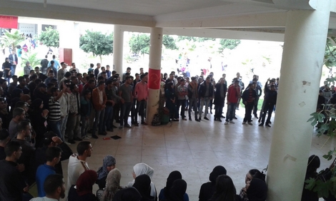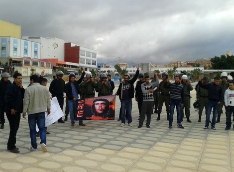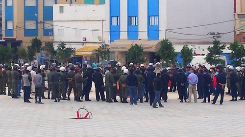 وحاصرت القوات العمومية التي توافدت على المدينة منذ الصباح عبر العديد من سيارات الامن، تجمع المعطلين وسط الساحة قرب المكان الذي قتل فيه الحساني قبل 4 سنوات، وذلك بغية منع أي تصعيد من المعطلين الغاضبين الذين يطالبون بكشف الحقيقة حول مقتل رفيقهم.