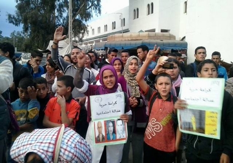 وفي إطار نفس المناسبة شهدت مدينة الحسيمة تنظيم مهرجان خطابي أمام مقر الجمعية المغربية لحقوق الإنسان شارك فيه معطلين من مختلف المدن للمطالبة بكشف الحقيقة حول هذه الجريمة والاعتراف القانوني بالجمعية الوطنية التي ظلت تكافح منذ 24 سنة، وذلك امام اعين السلطات الامنية والقوات العمومية، التي قامت بمحاصرة المخلدين للذكرى بشارع واد المخازن، بعد محاولتهم التحرك بمسيرة إحتجاجية في شوارع المدينة.