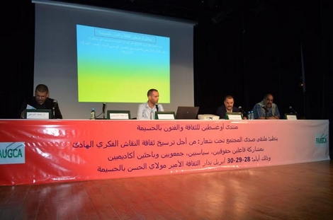 على امتداد ثلاثة أيام 28-29-30 أبريل 2016 بدار الثقافة الأمير مولاي الحسن بالحسيمة، نظم منتدى أوغسطين للثقافة والفنون بالحسيمة، ملتقى صدى المجتمع تحت شعار "من أجل ترسيخ ثقافة النقاش الفكري الهادئ".