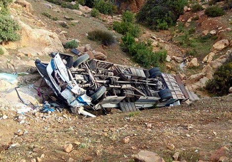 12 جريحا اثر انقلاب حافلة لنقل المسافرين نواحي الحسيمة