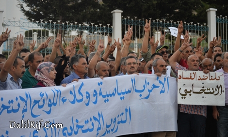 خرجت مجموعة من الأحزاب السياسية بإقليم الحسيمة، مساء اليوم الأحد 09 أكتوبر الجاري في وقفة إحتجاجية، أمام مقر عمالة الحسيمة، تنديداً بما أسموه "التزوير الانتخابي الذي عرفته انتخابات 07 أكتوبر بدائرة الحسيمة".