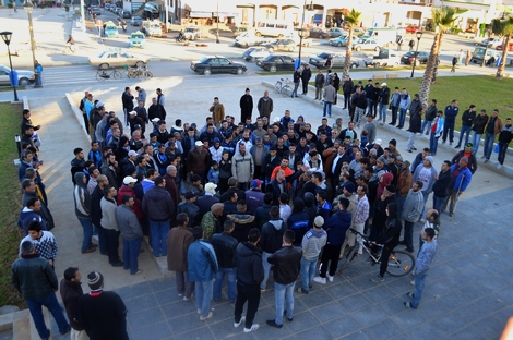 "متضررون" من توزيع المحلات يحتجون أمام المركب التجاري ببني بوعياش