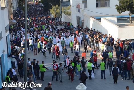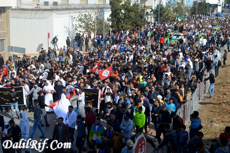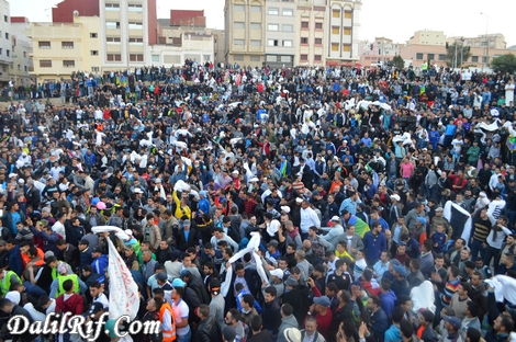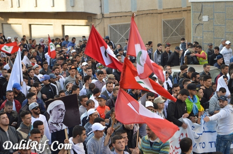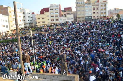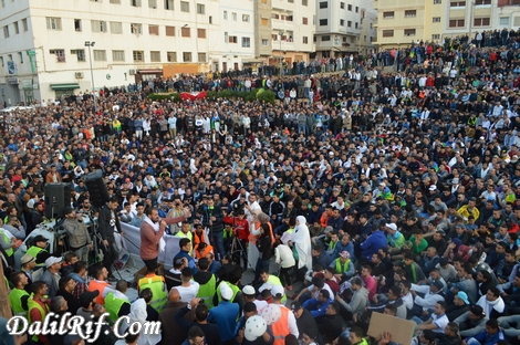 ومن جانبه عبّر الناشط ناصر الزفزافي عن اعتزازه بالتلاحم الذي عبّرت عن ساكنة الاقليم في مسيرة اليوم، مؤكداً ان الأخيرة تُشكّل صفعة قوية للمخزن الذي حاول على حد تعبيره زرع التفرقة بين مناطق الاقليم، كما اشاد الزفزافي بمختلف الحركات الاحتجاجية وبالإقليم، مُشيراً الى ان اي مطلب تم تحقيقه في منطقة معينة بالإقليم يُشكل انتصاراً للحراك، وشدّد في الآن ذاته على ضرورة الالتحام على الحراك الشعبي والنضال على ارضية الملف المطلبي الاقليم.