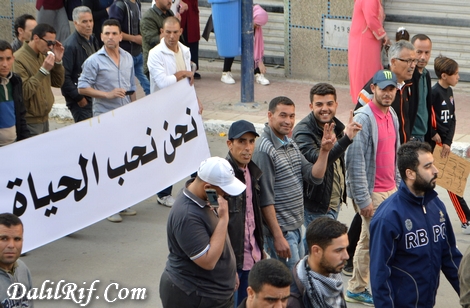 خرج عشية اليوم الأحد 09 ابريل الجاري، الآلاف من المحتجين بشوارع مدينة الحسيمة، في مسيرة "الأكفان من أجل الحياة" التي دعا اليها نشطاء الحراك الشعبي بالحسيمة.