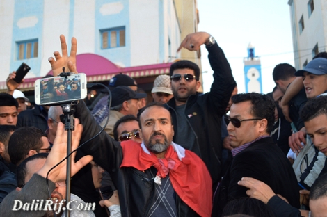 ورفع المحتجون الذين كانوا في انتظار وصول القافلة التي اقلت جلول من مدينة تيفلت، شعارات تنشد الحرية والكرامة واخرى ضد "العسكرة"، وغيرها من شعارات الحراك الريفي.
