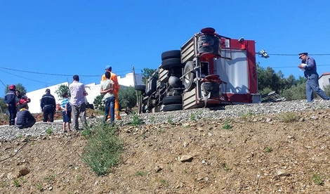 سبعة مصابين اثر انقلاب شاحنة للوقاية المدنية نواحي الحسيمة