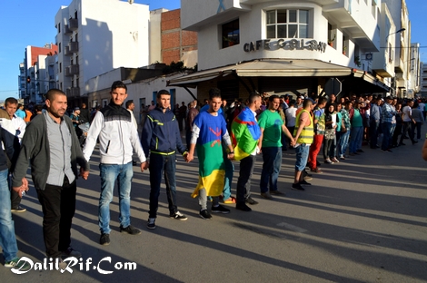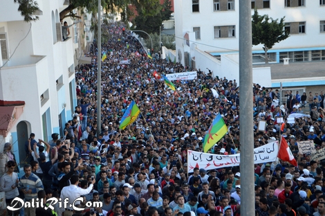 : رسالتي الى شعب بطل *الريف* ،هؤلأي من في المقدمة،*أل حركيون* هم نفسهم من رقصو وشركو في مهارجان المتوسط للغناء في الحسيمة في ألأعوم الماضي<يحملون ألأعلام ألأمازغيا ويحجونا ويرقصونا في*ساحة الكبيرة للمدينة الحسيمة* يطلبونا بي الجامعة وماهم بي طالب لعلم..يطالب المستشفى لسرطان وهم مريضون عقلنيا* مسيرة اليوم*الخميس*مسير ضعيفة وفاشيلة رغم قدوم جماهير من إمزورن بني بوعياش تماسينت* تقدر عدد الجماهير المشاركة بي حولي 8000 شخص رغم أن عدد سكان مدينة الحسيمة 50.000 نسمة* أي مشركة حولي ثالث بي المائة من سكانة الحسيمة وهذا إن يدل على شيئ يدل على سخط ناس على هؤلأي من في المقدمة<أل حركيون< من ملحد وعدم الخبرة وتجربة السياسية< ونتيجة هذ الحرك<صفر أو نقص صفر< صورة ألأول من مهارجان للغناء في ساحة الكبيرة الحسيمة وصورة الثاني من مضاهرة <اليوم الخميس<