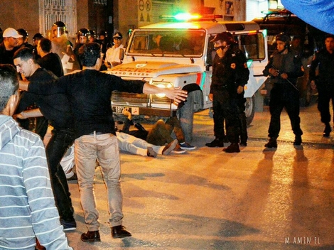 وخرجت بمدينة الحسيمة لليلة السادسة على التوالي، حشود غفيرة بحي سيدي عابد، الذي احتضن تجمع احتجاجي صاخب، فيما منعت السلطات الأمنية عدد من المحتجين الآخرين من الالتحاق بالحي بعد أن أغلقت جل منافذه بتشكيلات من القوات العمومية، الشيء الذي حذا ببعض المحتجين الى التجمع في ساحة الباديسي، حيث تدخلت قوات الأمن هناك لتفريقهم، مما تسبب في مناوشات في عدد من الشوارع.
