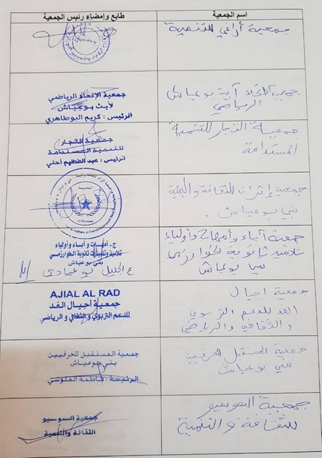 وتابعت الجمعيات المدنية في بيان لها انه "وأمام التعبير الصريح عن الارادة الحكومية لانجاز هذا المشروع العلمي الهام تكريسا للعناية المولوية التي يوليها صاحب الجلالة الملك محمد السادس نصره الله للمنطقة، و أمام التفاعل الايجابي الذي أبداه مجلس الجماعة الحضرية بني بوعياش إزاء هذا التعبير" تعلن عن اشادتها "القوية بالتعبير الصريح لوزارة التربية الوطنية عن ارادتها وعزمها انجاز هذا المشروع الذي طال انتظاره"، وتثمينها "للتفاعل الايجابي لمجلس الجماعة الترابية لبني بوعياش مع الموضوع ومبادرته لتوفير الوعاء العقاري الكافي لاحتضان المشروع".