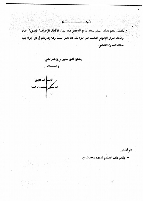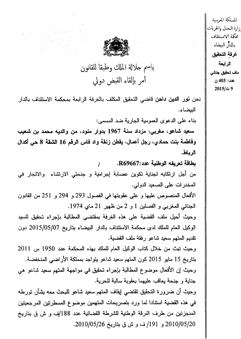 هذه هي مذكرة البحث الدولية الصادرة في حق سعيد شعو (وثيقة)