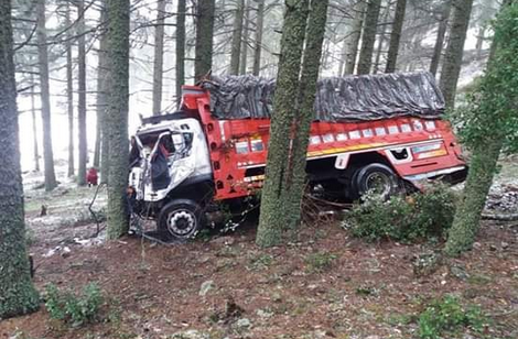 حادثة سير خطيرة بسبب تراكم الجليد على الطريق الرابط بين الحسيمة وشفشاون