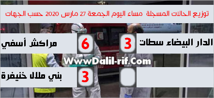 وتوزعت الحالات الجديدة المسجلة مساء اليوم على ثلاث جهات وفق الأرقام التالية: