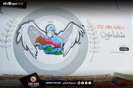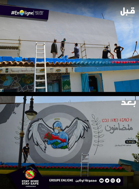 وقال هؤلاء الشباب المنتمين لجمعية "اونلاين" ان الجدارية هي تعبير عن مدى شكر وامتنان ساكنة الإقليم للأطر الصحية "ملائكة الرحمة" في انخراطهم (ن) والتزامهم(ن) ضمن الصفوف الأولى لمواجهة وباء كوفيد 19، عبر رسم خريطة المغرب في يد امنة.