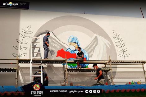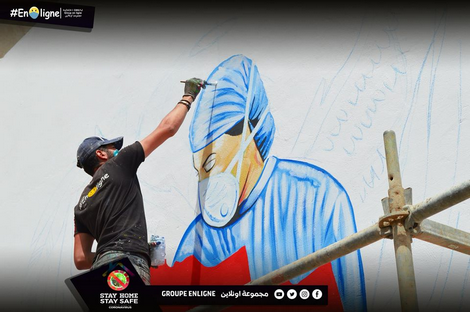 الحسيمة.. شبان يشكرون جنود الصفوف الأمامية في معركة كورونا بجدارية كبيرة