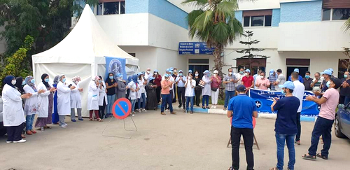 نظم العشرات من الاطر الصحية العاملة بإقليم الحسيمةّ، وقفة احتجاجية امام المندوبية الاقليمية للصحة بالحسيمة، احتجاجا على تعامل الحكومة مع مطالبهم.