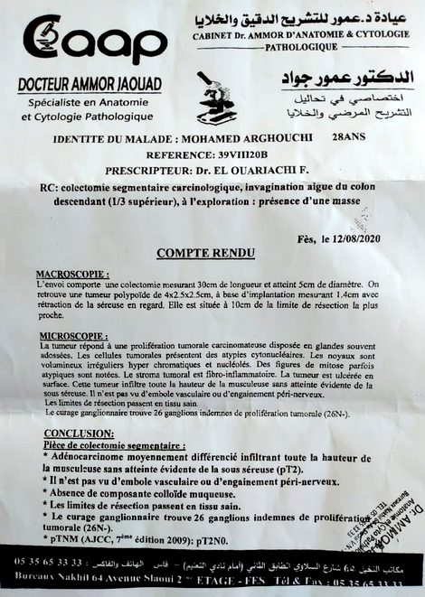 بعد إخضاعه لعمليتين جراحيتين منذ نحو أسبوعين بالمستشفى الإقليمي للحسيمة على مستوى الأمعاء وقد تم إستئصال جزء منهم ، وللأسف أكدت نتائج التحاليل الطبية إصابة الشاب محمد أرغوشي بمرض السرطان على مستوى الأمعاء.