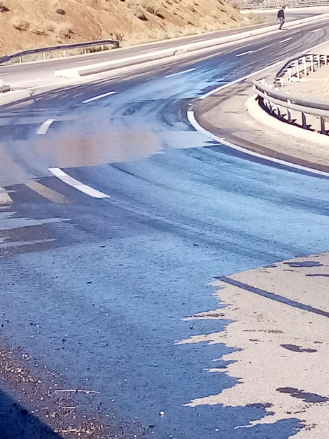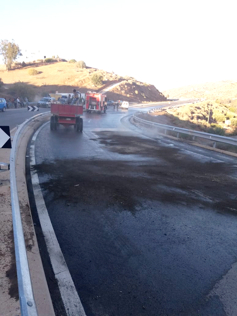 الحسيمة.. تدفق الزيت على الطريق كاد ان يتسبب في كارثة بجماعة النكور (صور)