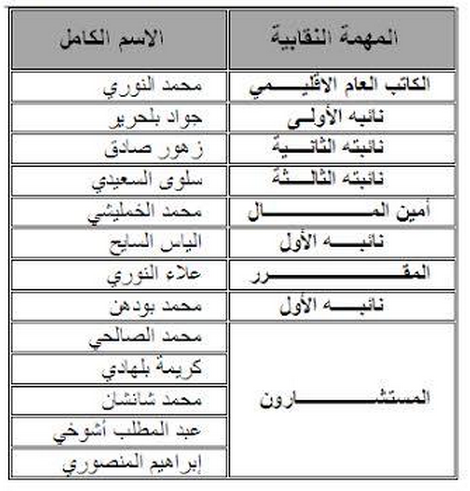وعرف الاجتماع تقديم ومناقشة التقريرين الأدبي والمالي والمصادقة عليهما بالإجماع، ليتم انتخاب مكتب نقابي إقليمي جديد، مكون من 13 عضوا.