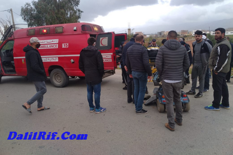 وقد جرى نقل الشيخ الى المستشفى الإقليمي بالحسيمة، على متن سيارة إسعاف تابعة للوقاية المدنية، بعد تعرضه لإصابات متفاوتة الخطورة، في الوقت الذي لا تعرف فيه الحالة الصحة لسائق الدراجة لنارية، الذي غادر المكان مباشرة بعد الحادث.