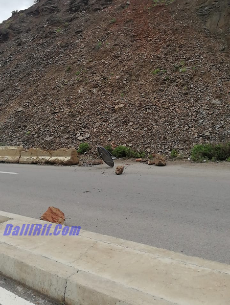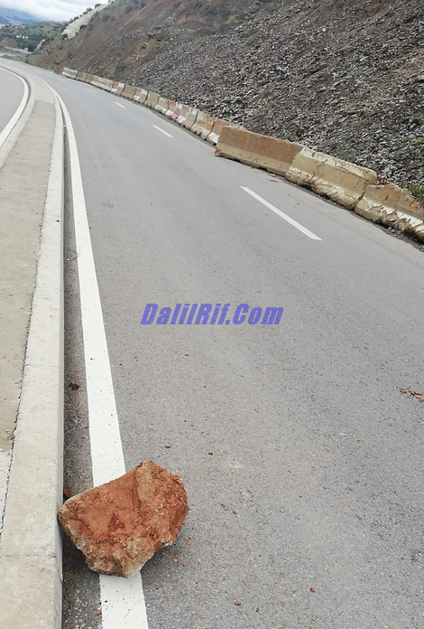 وشهد هذه الطريق على مستوى دوار تزوراخت السلفى بجماعة النكور، أمس الجمعة 16 ابريل، سقوط أحجار وسط الطريق، كما سجل انهيار ترابي يهدد بغمر احد محوري الطريق.