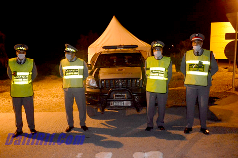 وتقوم عناصر الدرك الملكي بمراقبة تنقل الأشخاص والبضائع بين مختلف المناطق في سياق التدابير الاحترازية الرامية إلى الحد من انتشار فيروس كورونا المستجد، وذلك عبر نهج مقاربة صارمة للتثبت من توفر المواطنين على التراخيص الاستثنائية، حرصا على احترام مقتضيات حالة الطوارئ الصحية التي أقرتها السلطات العمومية في مواجهة انتشار فيروس كورونا المستجد.