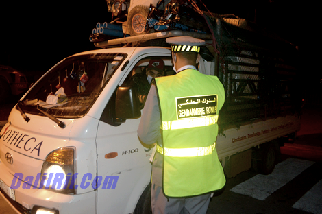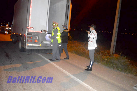 وتعمل مصالح الدرك باقليم الحسيمة، على تعزيز تدابير التفتيش المفروضة من خلال السدود الثابتة عند مداخل ومخارج مناطق تدخلها، خاصة بالنسبة للشاحنات، كما تجري عمليات المراقبة الدائمة للمعابر في إطار تطبيق الإجراءات التنظيمية المتمثلة، على الخصوص، في ارتداء الكمامات والواقيات، واحترام مسافة الأمان بين عناصر الدرك وسائقي العربات الذين يتم التثبت من توفرهم على التراخيص الاستثنائية.
