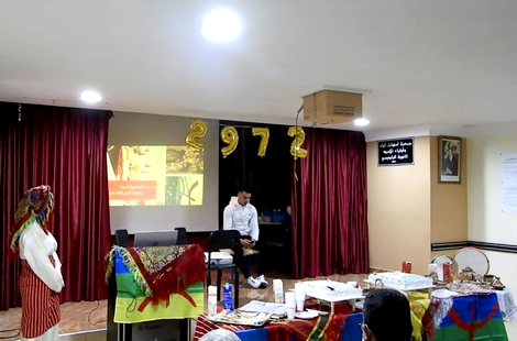 وتضمنت هذه الأمسية فقرات متنوعة تضمنت عرضا حول السنة الامازيغية تقاليد وعادات الأمازيغ للاحتفال بهذه المناسبة وقد قدم العرض من طرف الطالبة مريم أهروش