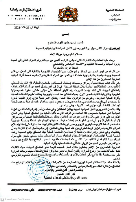 وجه نور الدين مضيان رئيس الفريق الاستقلالي بمجلس النواب، سؤالا كتابيا الى وزير السياحة والصناعة التقليدية والاقتصادي الاجتماعي والتضامني، حول التدابير المعايير لتأهيل السياحة الجبلية باقليم الحسيمة.